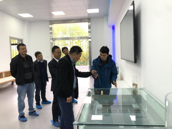 朱愛民一行先后參觀了水生生物預(yù)警池、跌水曝氣氧化池、PAC加藥間、清水池、二級泵房及凈水車間等生產(chǎn)工藝全流程,對各個構(gòu)筑物及設(shè)備的主要功能和運行情況進行了詳細的了解與查看。