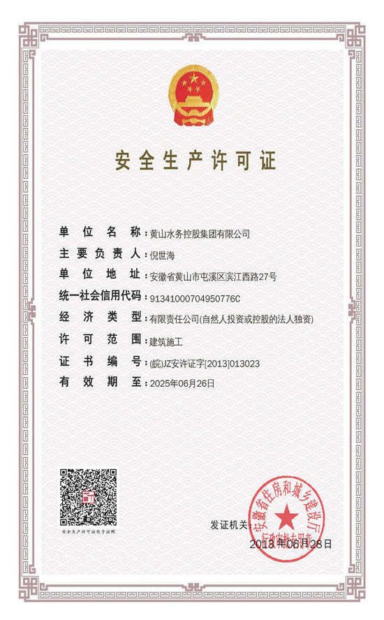 黃山水務(wù)控股集團(tuán)安全生產(chǎn)許可證順利通過復(fù)審