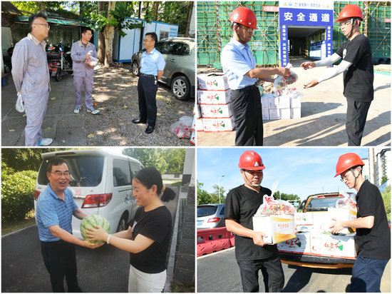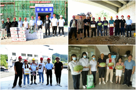 連續(xù)高溫酷暑,不僅考驗(yàn)著奮斗在一線的廣大員工,更牽動(dòng)著公司領(lǐng)導(dǎo)的心。7月12日,黃山水務(wù)控股集團(tuán)開(kāi)展“送清涼”活動(dòng)。水務(wù)控股集團(tuán)總經(jīng)理倪世海帶隊(duì)來(lái)到溪口水廠、互聯(lián)互通工程二期、市南部城鎮(zhèn)群水務(wù)調(diào)度中心等項(xiàng)目施工現(xiàn)場(chǎng)及安裝分公司、管網(wǎng)運(yùn)行部等一線作業(yè)部門,仔細(xì)察看一線人員工作環(huán)境以及安全生產(chǎn)防護(hù)設(shè)施,與他們親切交談,詳細(xì)詢問(wèn)其工作、生活情況,了解項(xiàng)目進(jìn)度,并為他們送去西瓜、礦泉水等防暑降溫用品。倪世海對(duì)一線員工冒著酷暑,辛勤工作表示感謝,并叮囑相關(guān)負(fù)責(zé)人,要嚴(yán)格按照公司“做好防暑降溫,確保安全生產(chǎn)”的要求,進(jìn)一步加強(qiáng)一線員工防暑降溫及相關(guān)急救知識(shí)的宣傳教育,積極應(yīng)對(duì)高溫天氣給工作帶來(lái)的困難與不便,確保各項(xiàng)工作有序推進(jìn);他要求施工單位要重視高溫季節(jié)安全生產(chǎn),合理安排作業(yè)時(shí)間,切實(shí)做好露天作業(yè)各項(xiàng)防暑降溫措施和勞動(dòng)保護(hù)工作。
