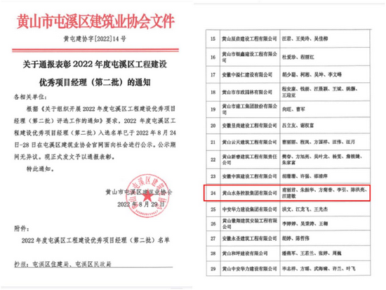 精益建造 鍛造隊(duì)伍 ——黃山水務(wù)控股集團(tuán)多人榮獲屯溪區(qū)工程建設(shè)“優(yōu)秀項(xiàng)目經(jīng)理”榮譽(yù)稱號(hào)
