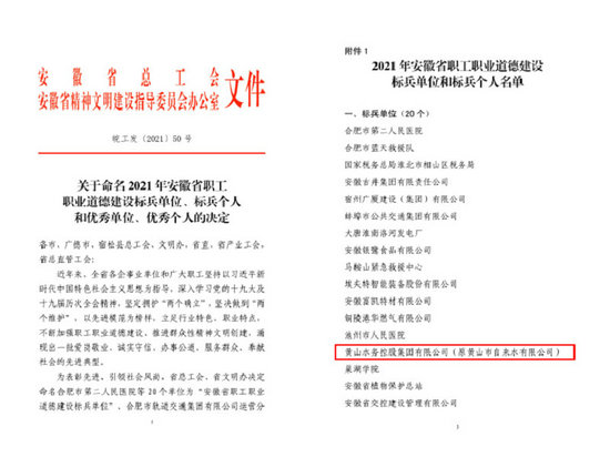 2021年黃山市職工職業(yè)道德建設(shè)標(biāo)兵單位